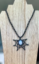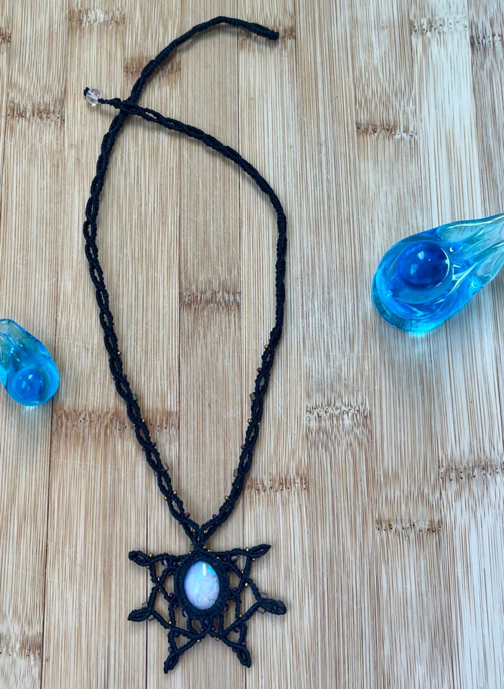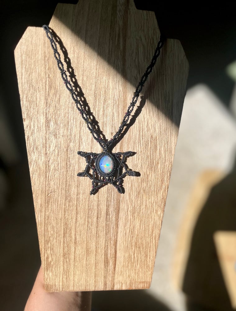 Gorgeous opal cabochon star-shaped macrame pendant necklace